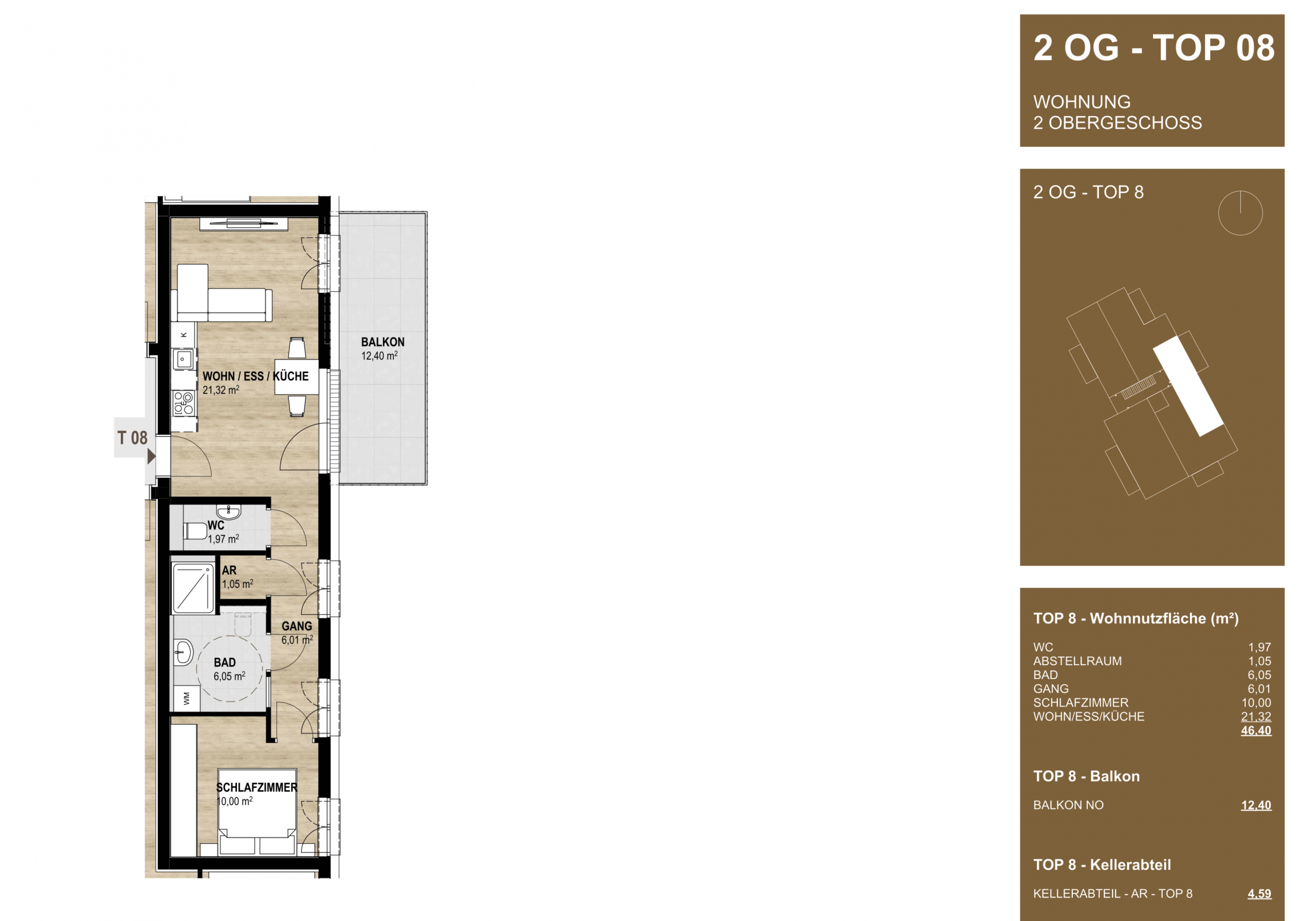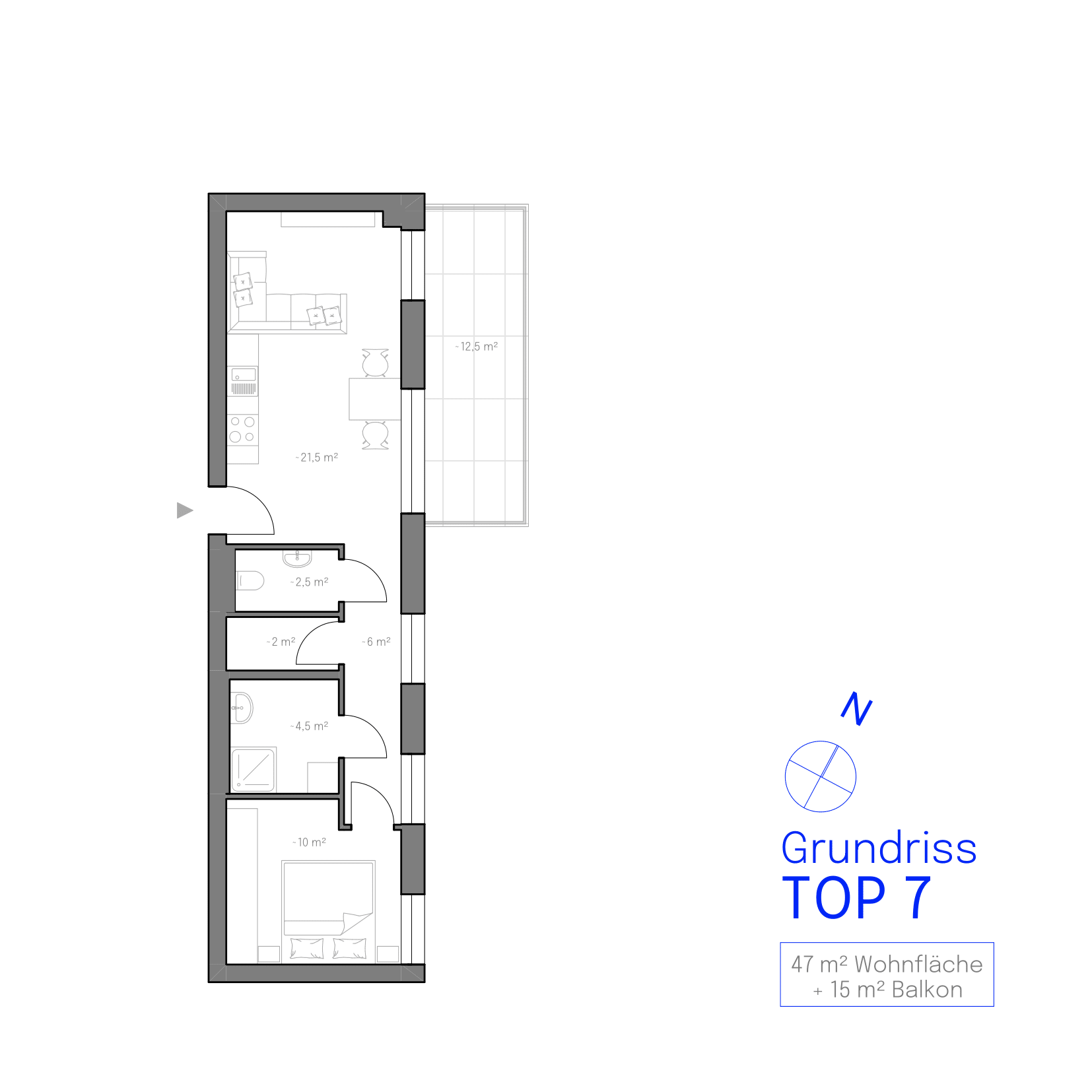 | Top 08 | 47 m² | 12 m² | 2. Stock | 2 Zimmer | #reserviert |