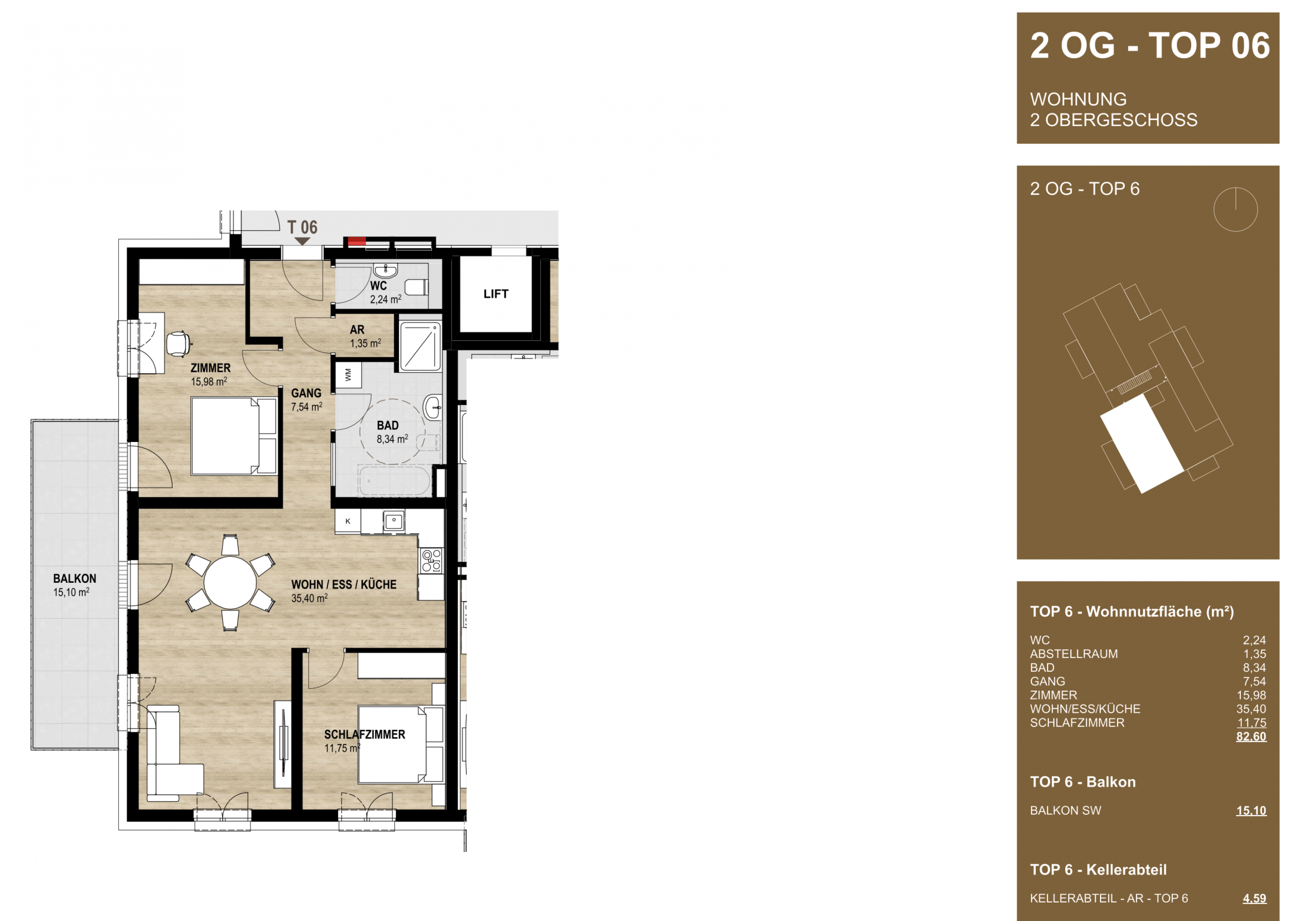 | Top 06 | 83 m² | 15 m² | 2. Stock | 3 Zimmer | #reserviert |