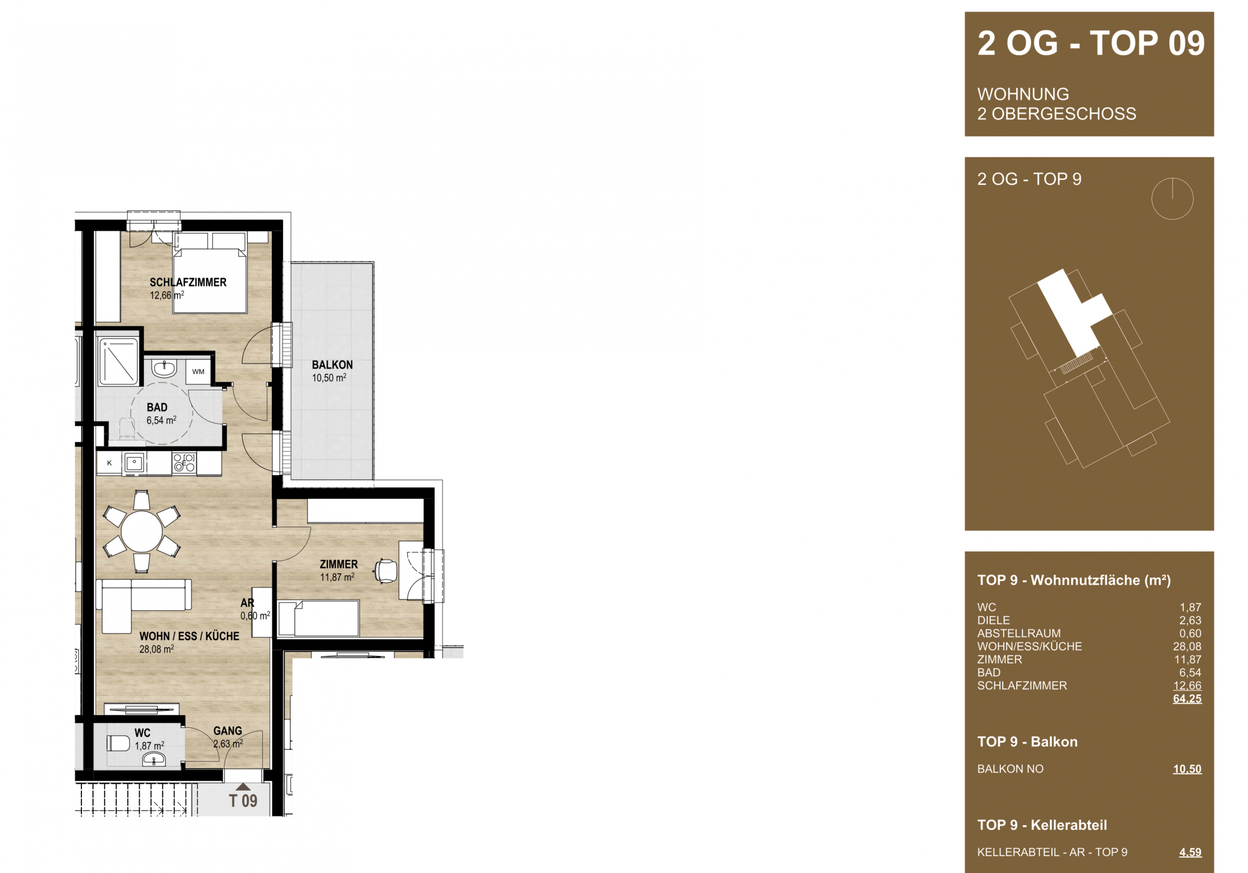| Top 09 | 65 m² | 10 m² | 2. Stock | 3 Zimmer | 314.900 € |