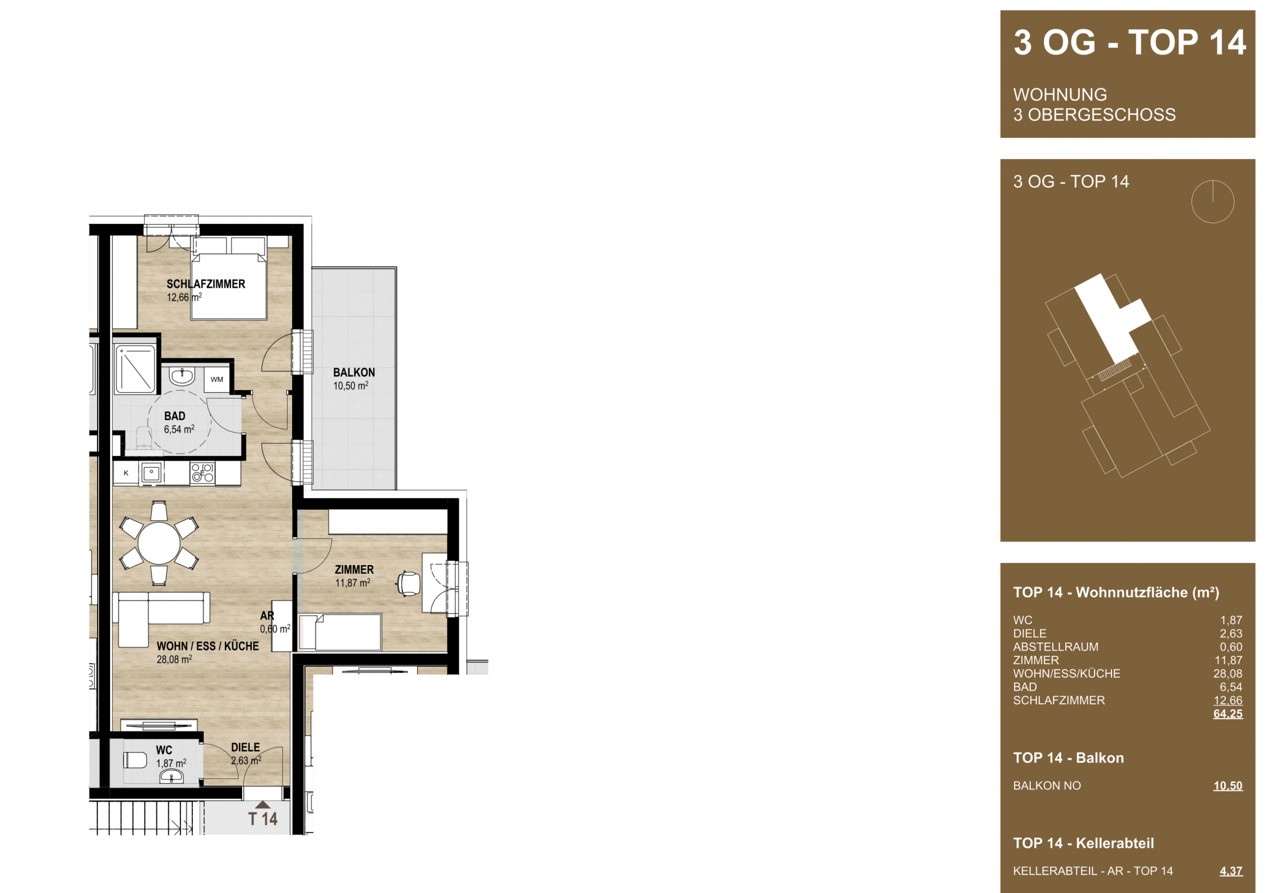 | Top 14 | 64 m² | 10 m² | 3. Stock | 3 Zimmer | 314.900 € |