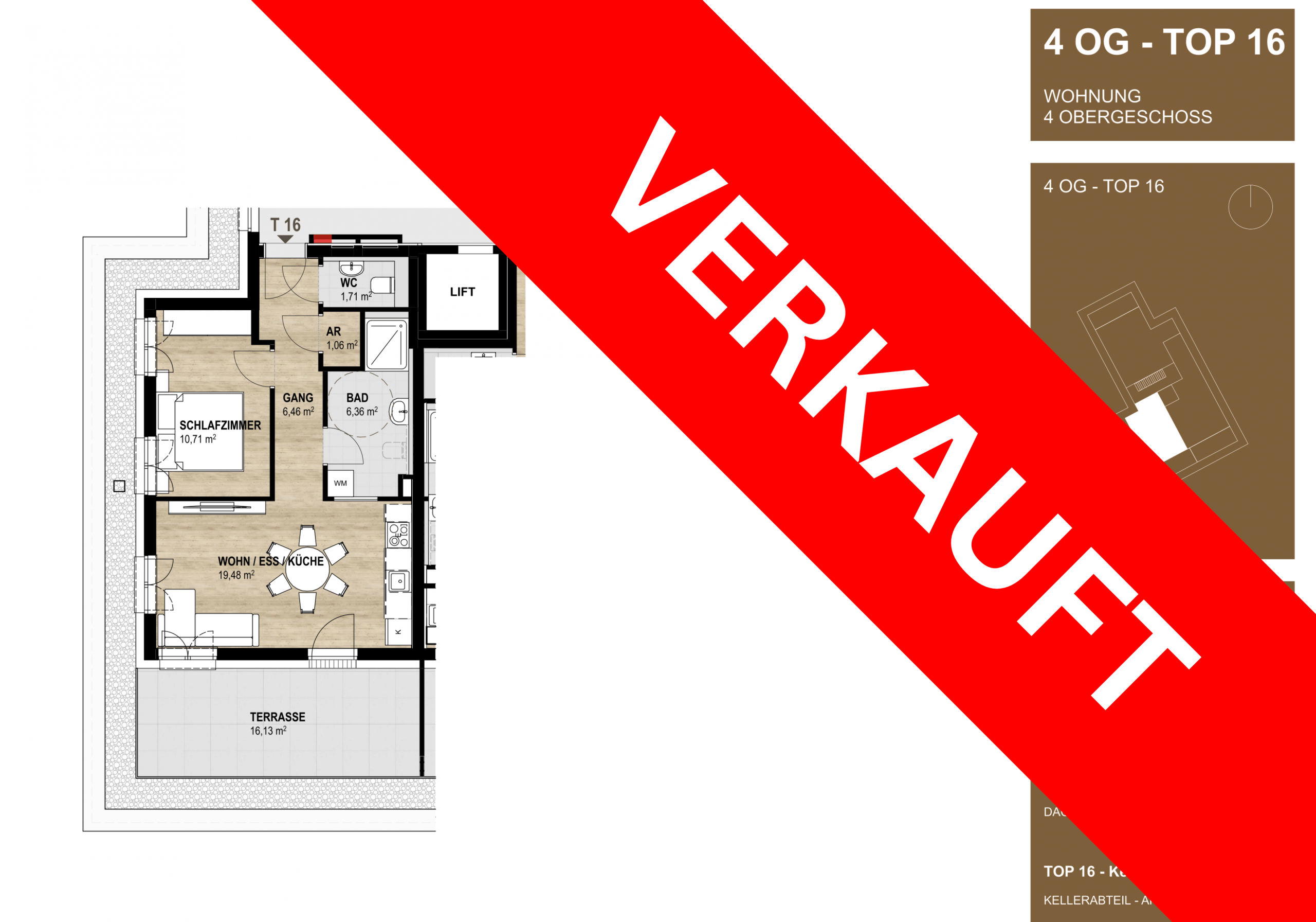 | Top 16 | 46 m² | 16 m² | 4. Stock | 2 Zimmer | #verkauft |