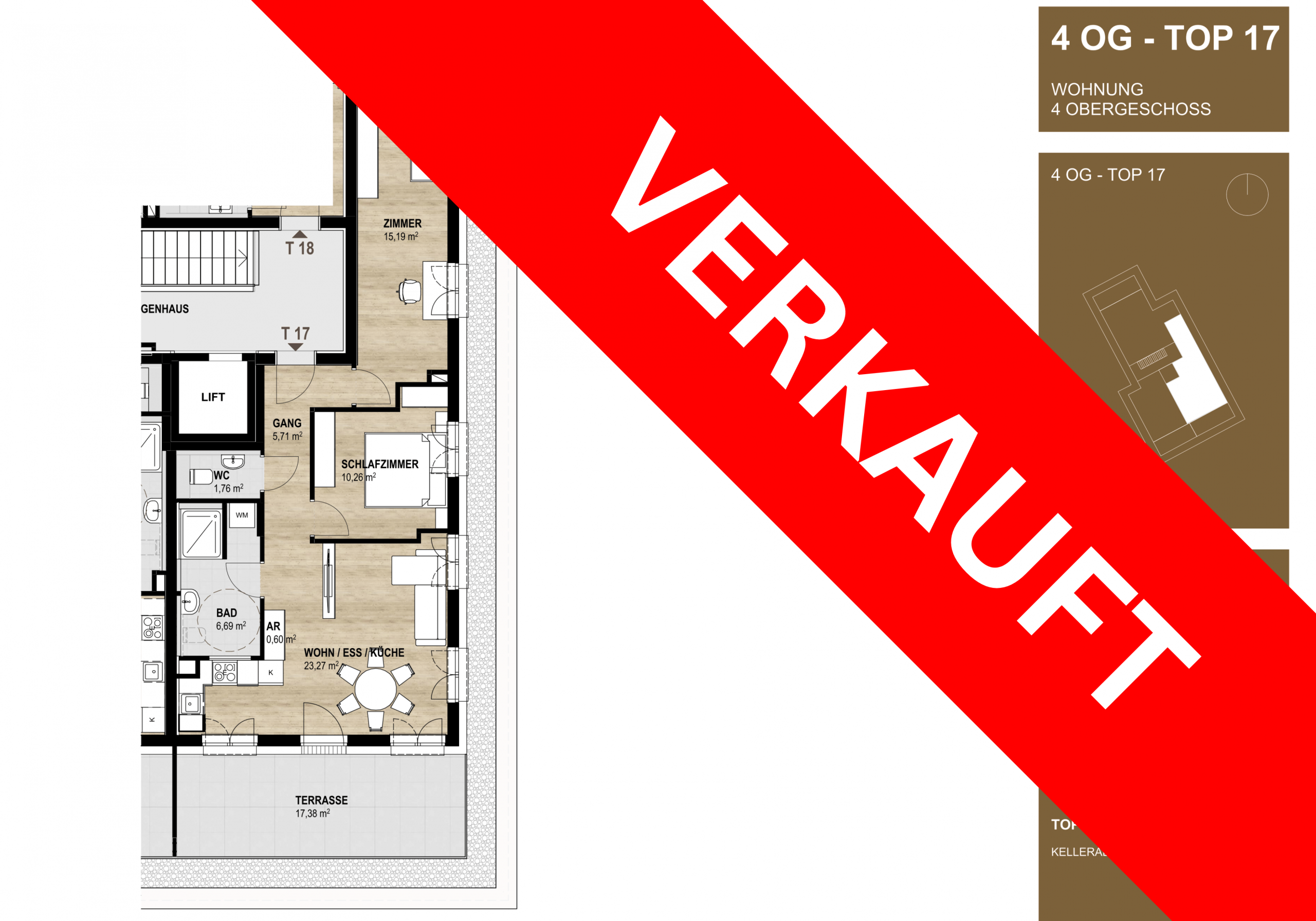 | Top 17 | 64 m² | 17 m² | 4. Stock | 3 Zimmer | #verkauft |