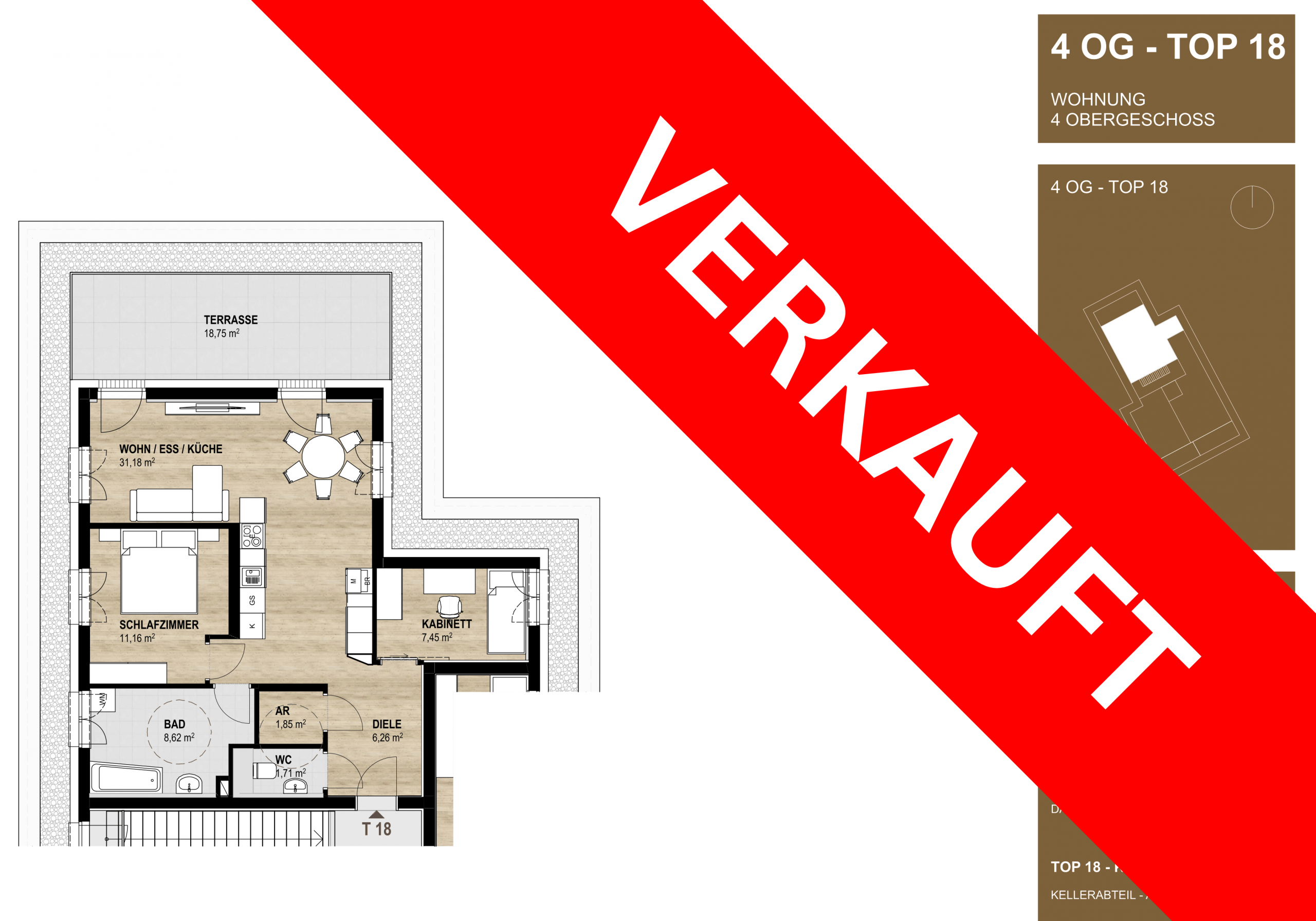 | Top 18 | 70 m² | 19 m² | 4. Stock | 3 Zimmer | #verkauft |