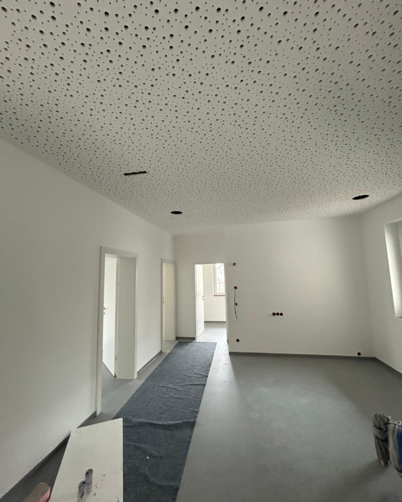 - Die Fertigstellungsarbeiten im Gebäude haben begonnen, wodurch die einzelnen Bereiche nun Schritt für Schritt ihre finale Ausführung erhalten.