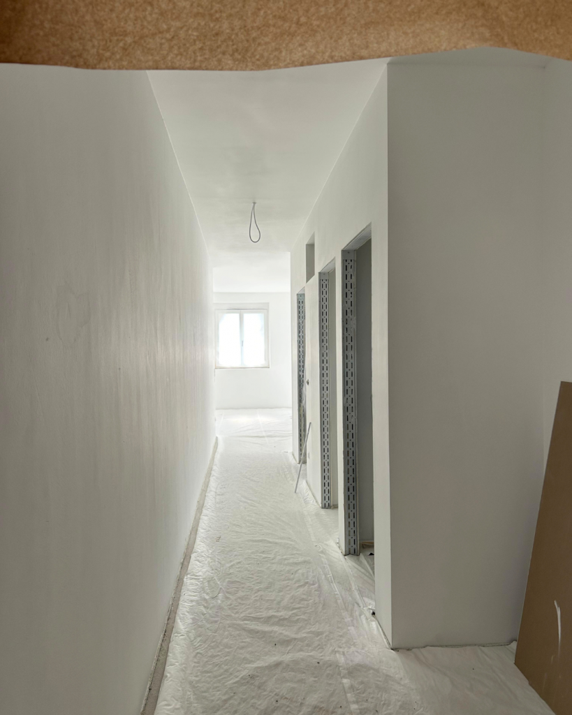 - Der Maler stellt die Wohnungen laufend fertig, sodass die Räume nun ihre finale Oberfläche erhalten