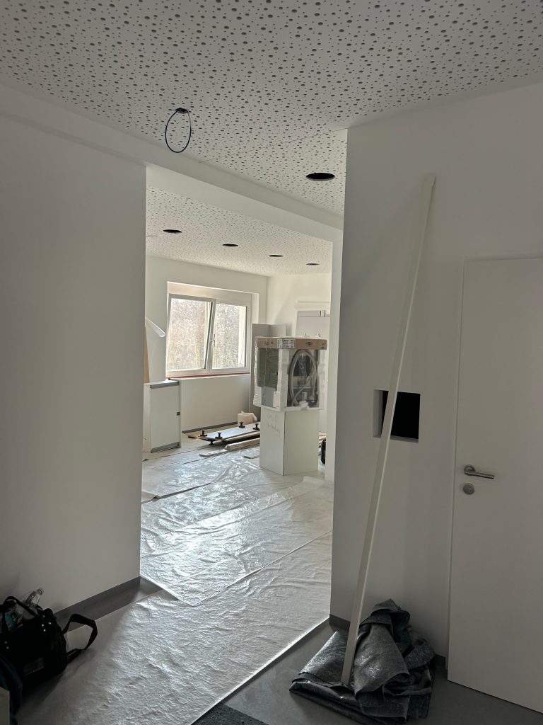 Auf unserer Baustelle in der Punzer Straße schreiten die Arbeiten weiterhin planmäßig voran. Der Innenausbau befindet sich mittlerweile in einer sehr fortgeschrittenen Phase, und immer mehr Bereiche erreichen ihre finale Ausführung.